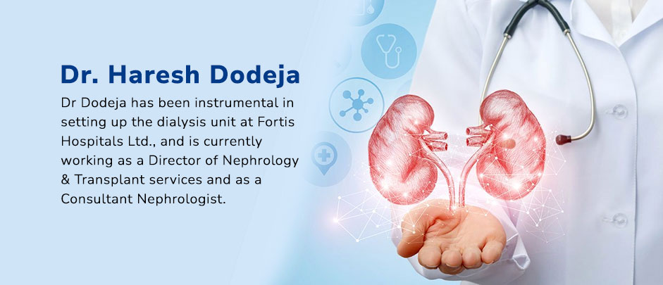 Dr Dodeja has been instrumental in setting up the dialysis unit at Fortis Hospitals Ltd., and is currently working as a Director of Nephrology & Transplant services and as a Consultant Nephrologist.